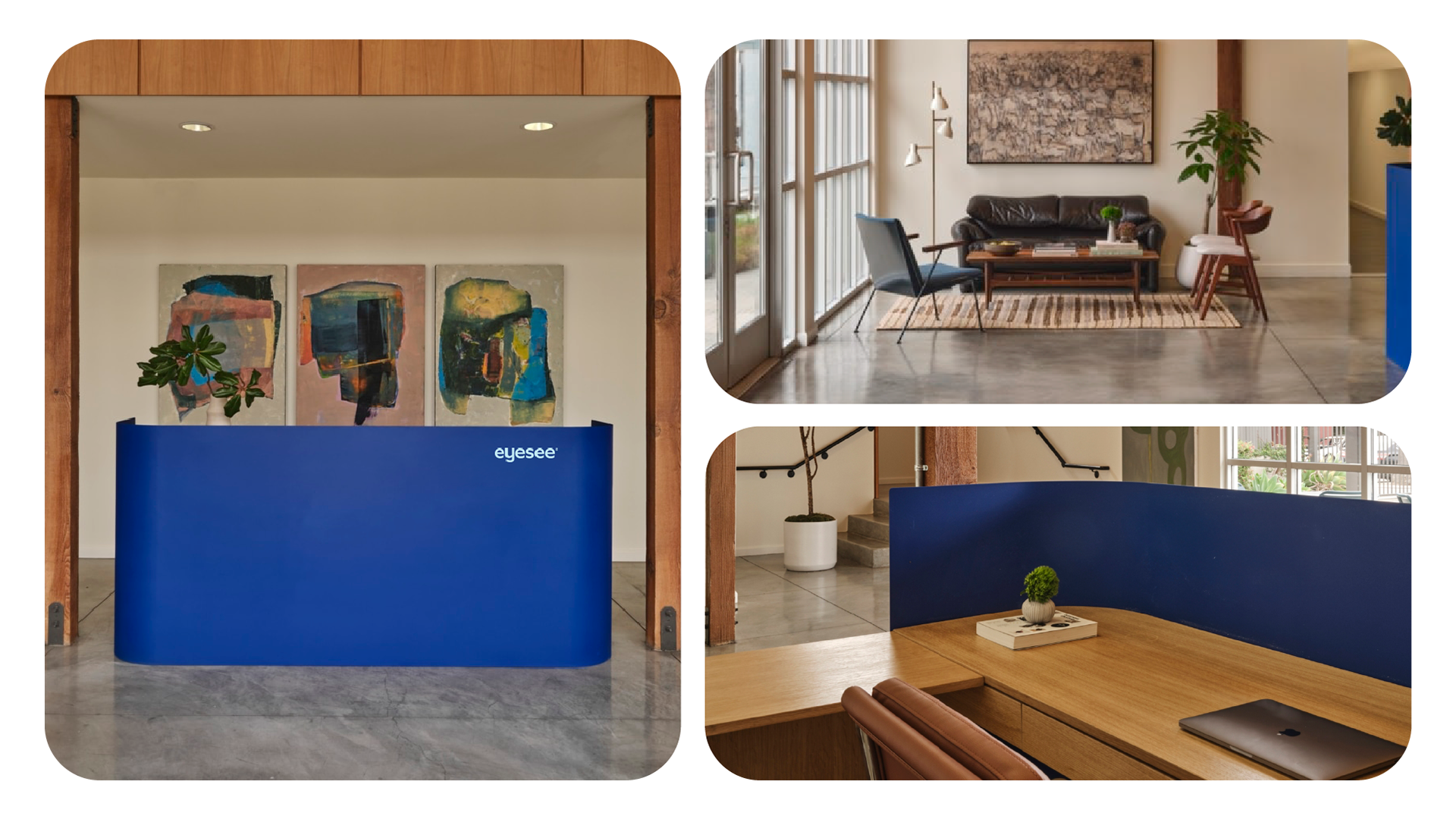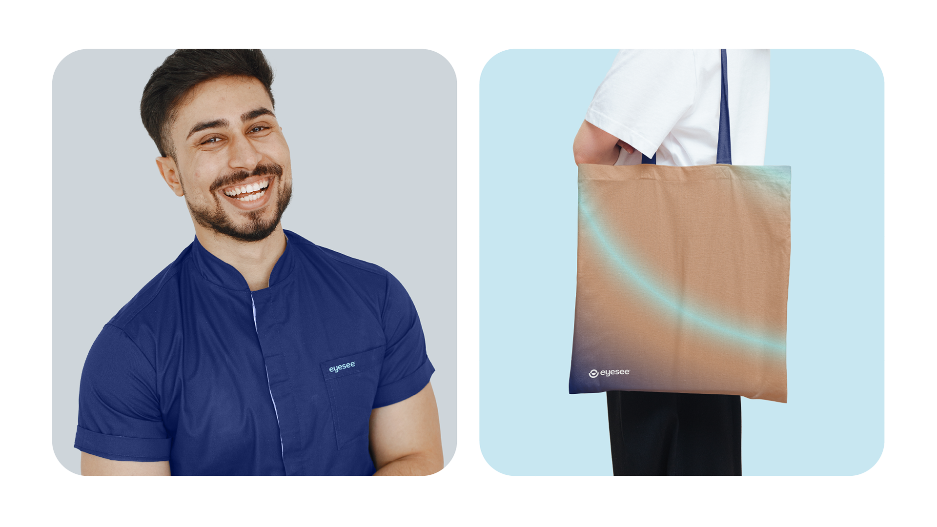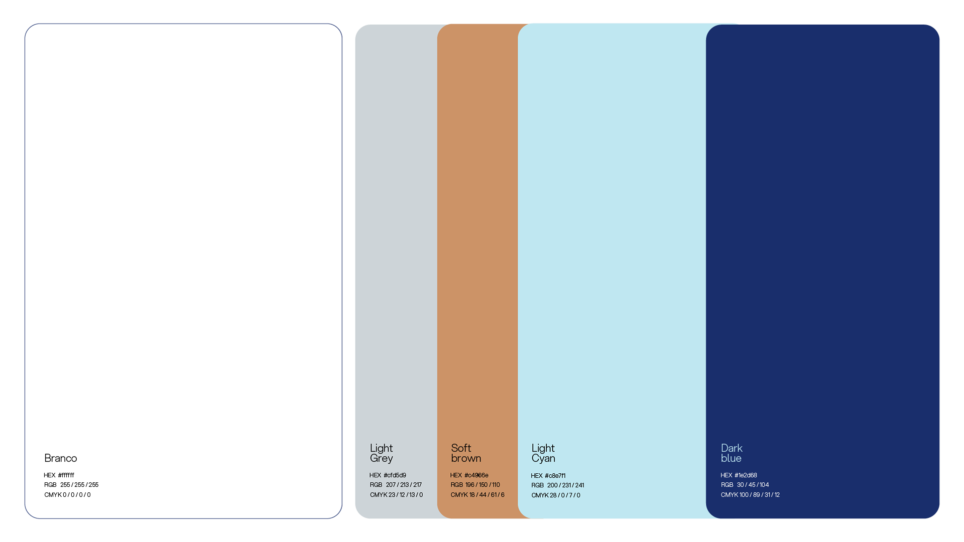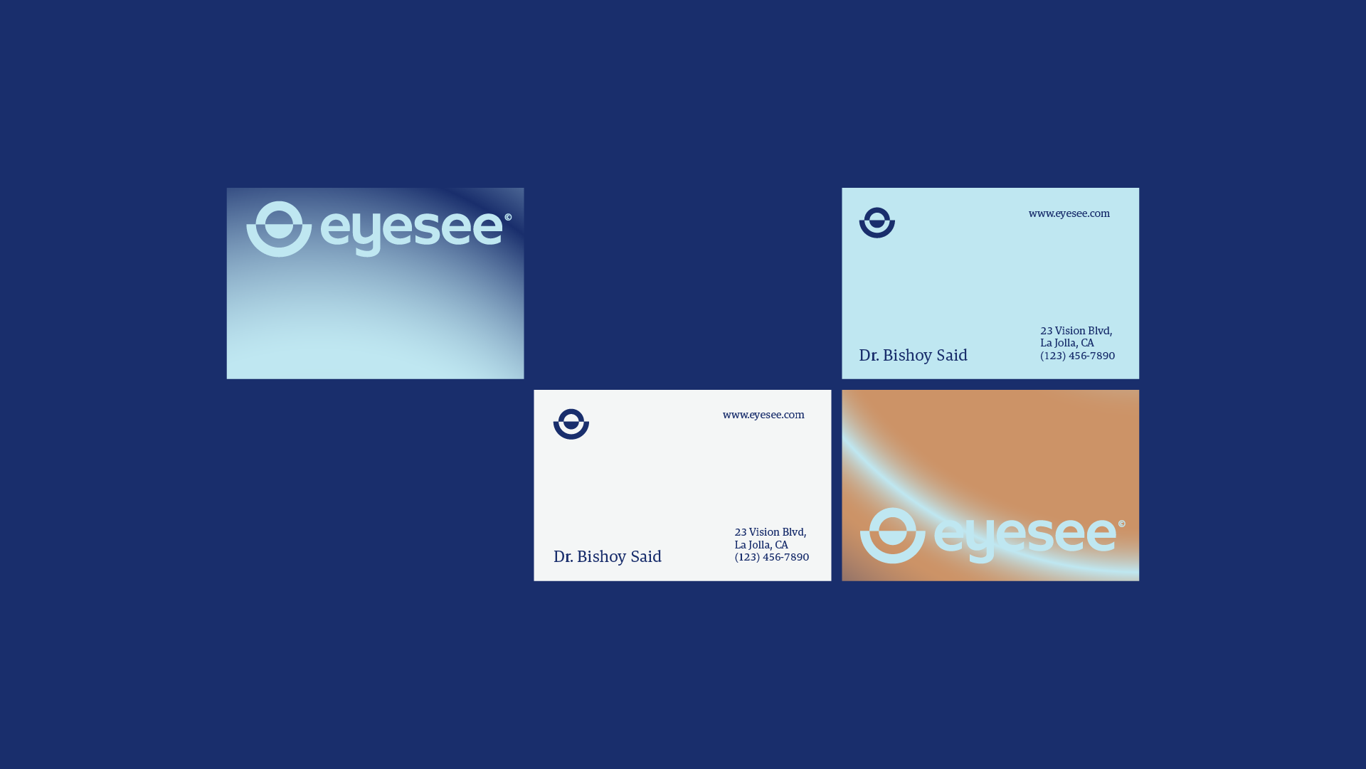 With a full color palette including Soft Cyan, Dark Blue, White, Brown and Medium Bluish Grey, EyeSee's visual identity has a sophisticated base, balancing modernity and reliability. The colors convey a sense of professionalism, welcome and innovation, with touches of warmth and softness in the shades of brown and grey, while the blue and cyan evoke confidence and clarity.