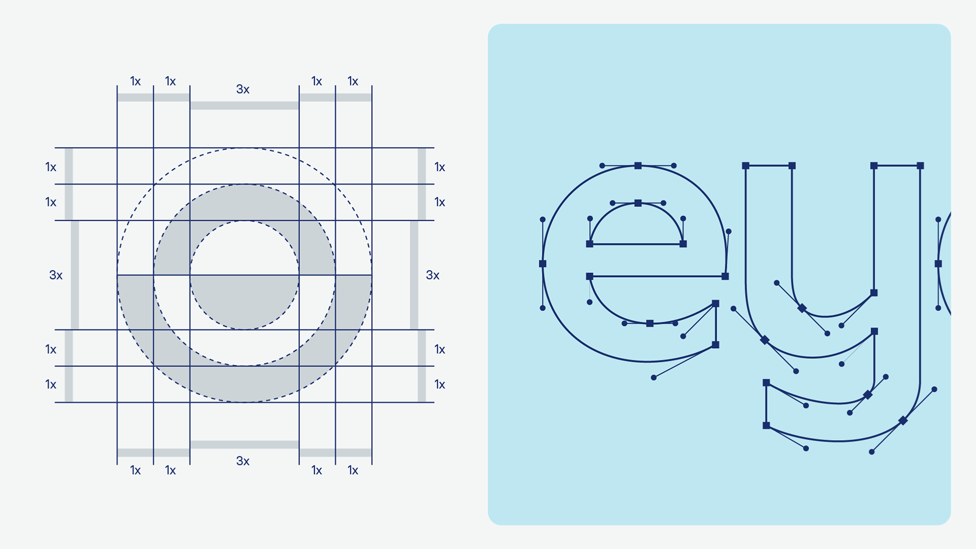 The circular and geometric grid used in the design of the EyeSee icon is fundamental to creating a harmonious and structured visual identity. The choice of a grid based on circles reflects the natural symmetry and precision of the ocular anatomy, connecting directly with the concept of vision. It conveys balance and clarity, crucial elements for the perception of trust and expertise that the brand wishes to convey. By applying the geometric grid, we sought not only an organized visual structure, but also a modern, clean aesthetic that makes it easy to read and reproduce the icon in different scales and applications. The geometry of the design reflects EyeSee's innovative technology, while being flexible enough to adapt to different contexts. The intersection between circles and straight lines within the grid symbolizes the integration of traditional medical practices with technological innovations, creating a sense of movement and dynamism, without losing precision and harmony.
