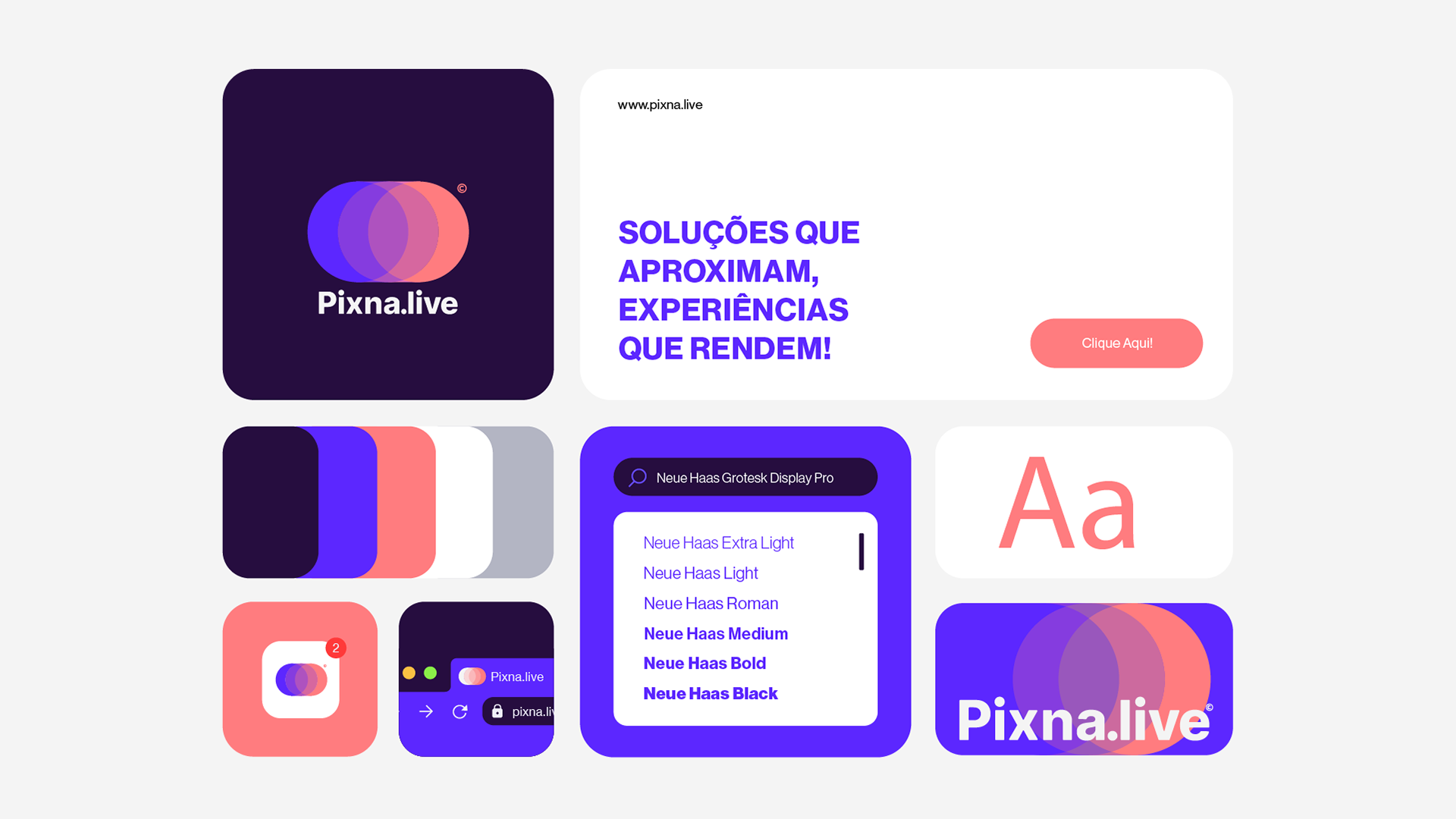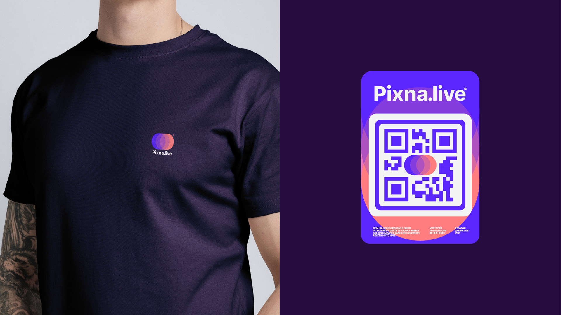 O movimento implícito no design da moeda conecta-se ao dinamismo da paleta de cores vibrante, especialmente ao gradiente que vai do roxo ao rosa avermelhado, sugerindo transições e progresso. Ele também se alinha com os grafismos abstratos, que simbolizam energia e fluxo, criando uma narrativa visual que transmite inovação e modernidade. Ao unir conceito e forma, o símbolo traduz o propósito da Pixna.live de forma simples e impactante, funcionando como um elemento central que reforça a personalidade jovem, criativa e conectada da marca.