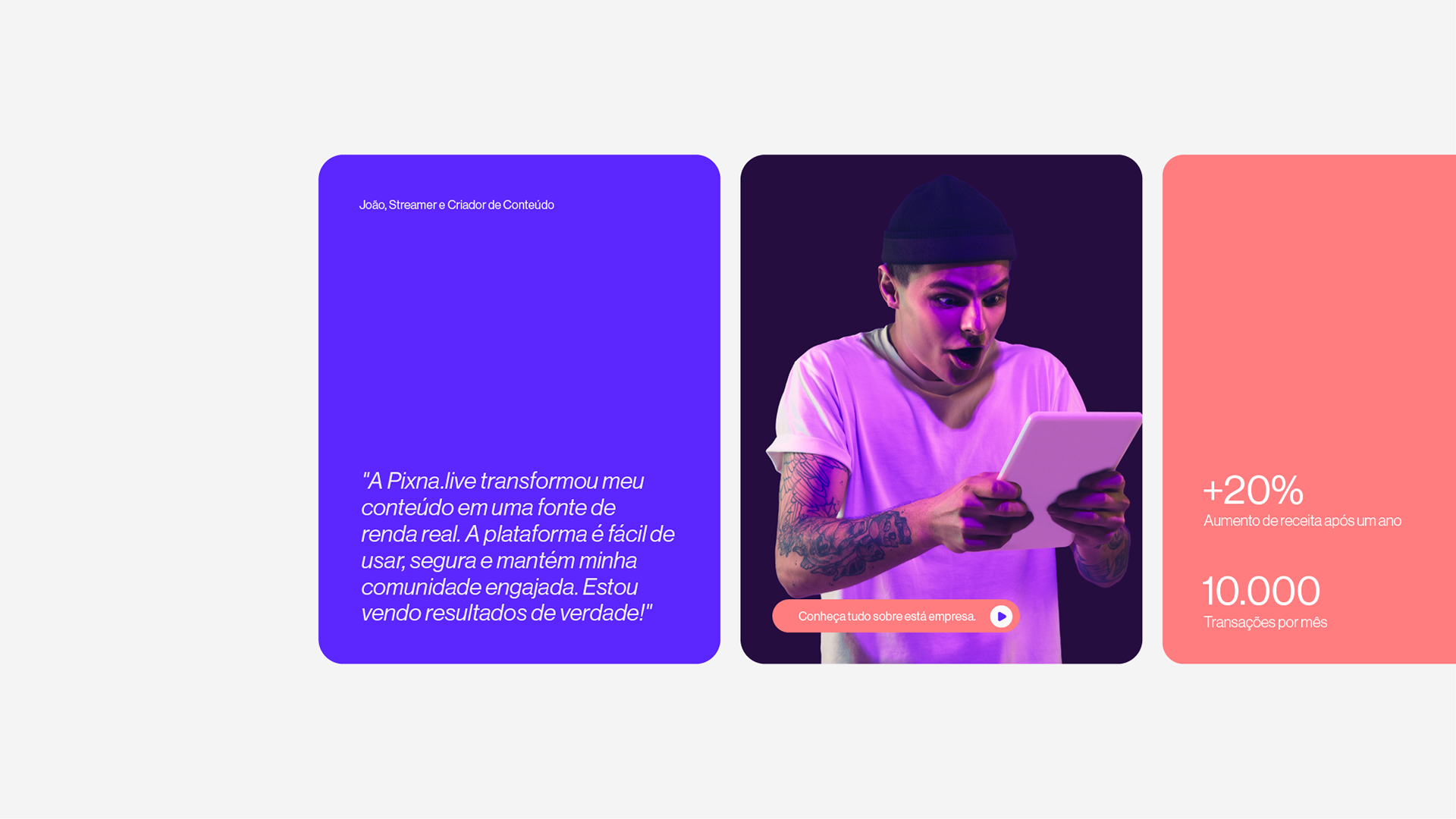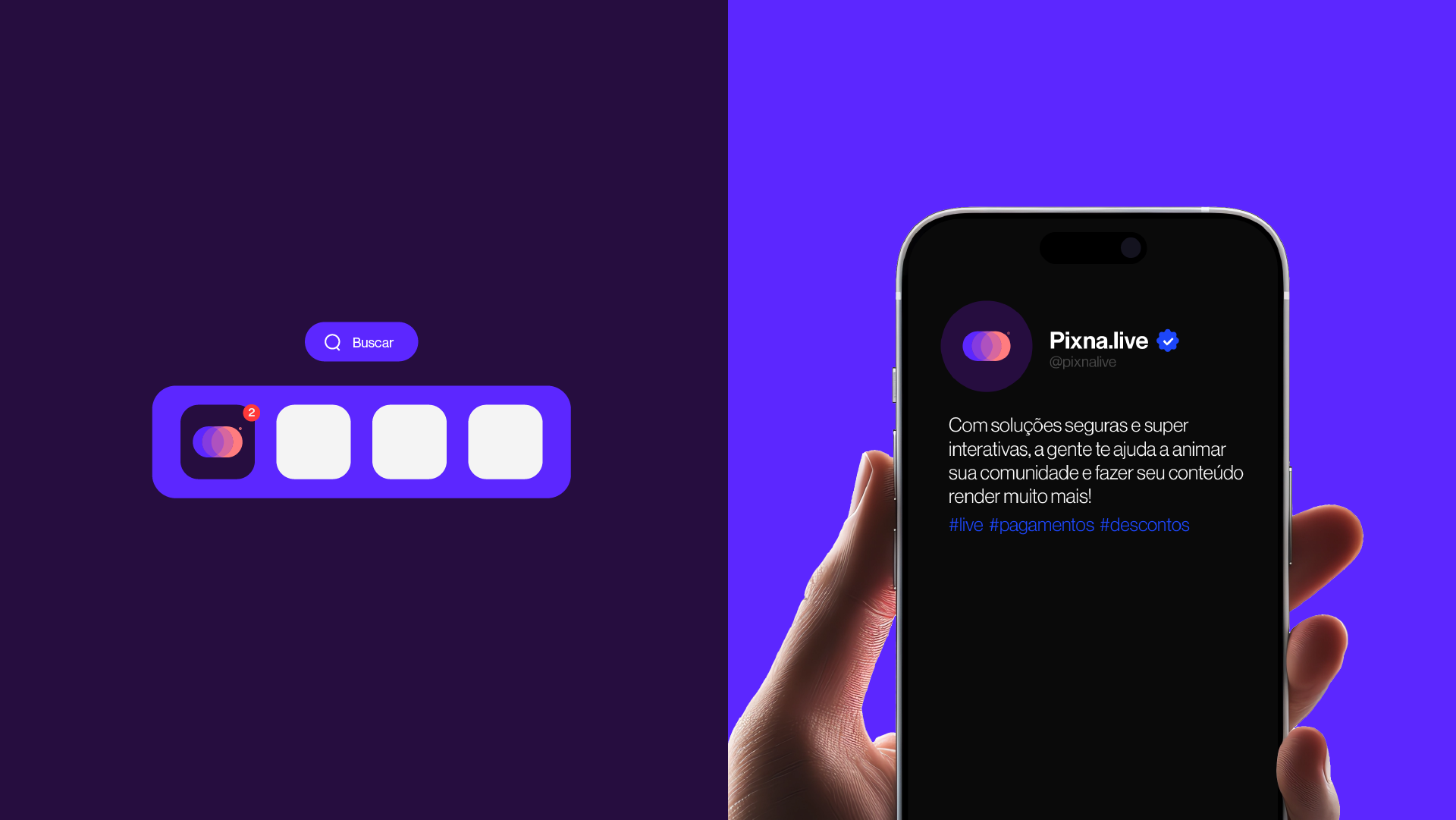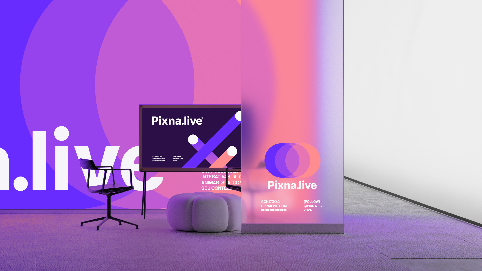 Os grafismos de suporte da Pixna.live, com seus elementos arredondados abstratos e cheios de dinamismo, são uma extensão perfeita da identidade visual da marca. Esses elementos capturam o espírito de movimento e energia que define tanto a essência da Pixna.live quanto o mundo vibrante dos criadores de conteúdo e streamers.