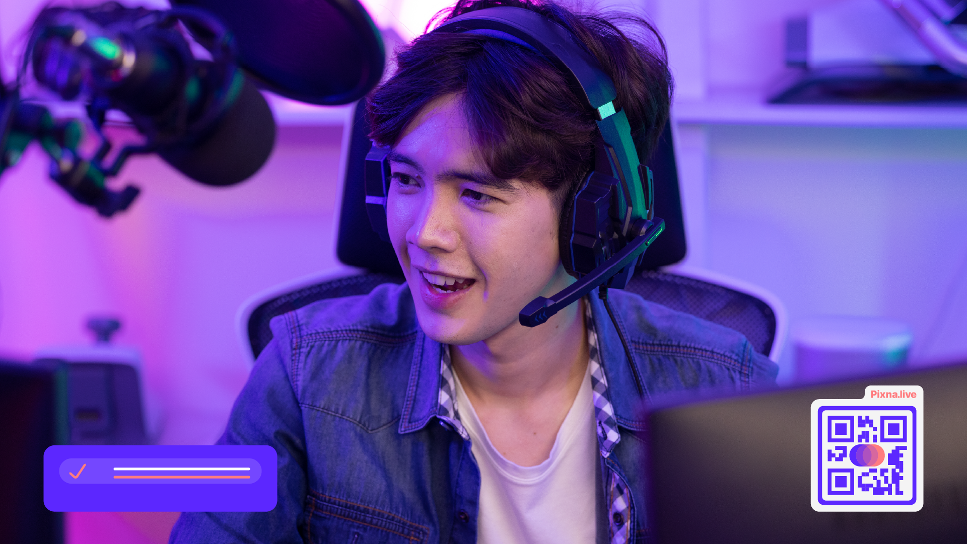 Pixna.live's support graphics, with their rounded abstract elements full of dynamism, are a perfect extension of the brand's visual identity. These elements capture the spirit of movement and energy that defines both the essence of Pixna.live and the vibrant world of content creators and streamers.