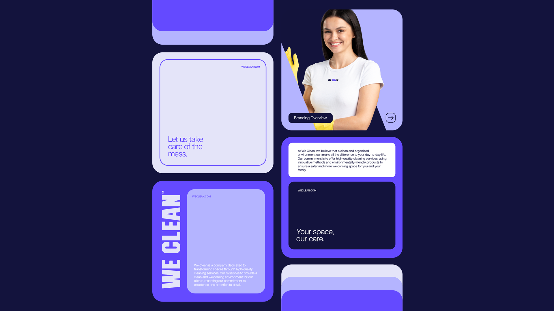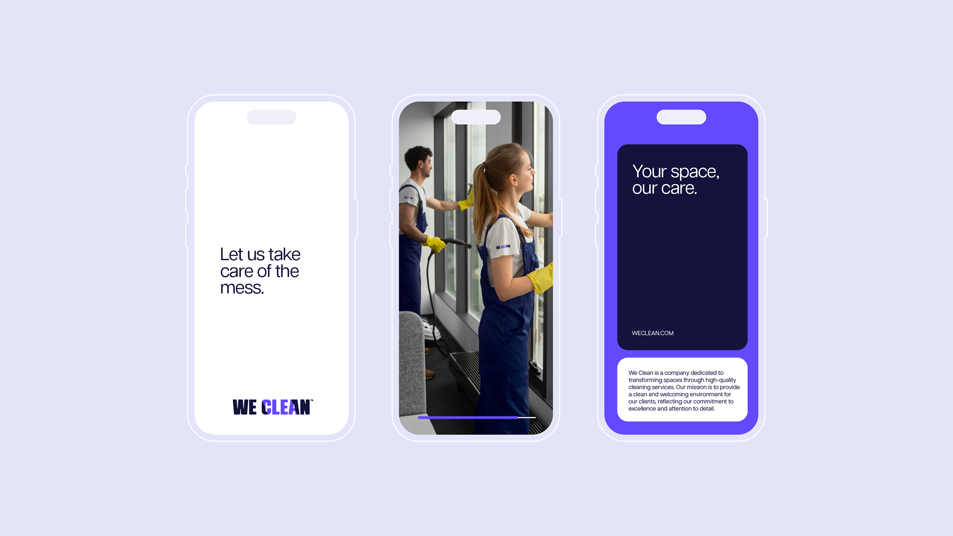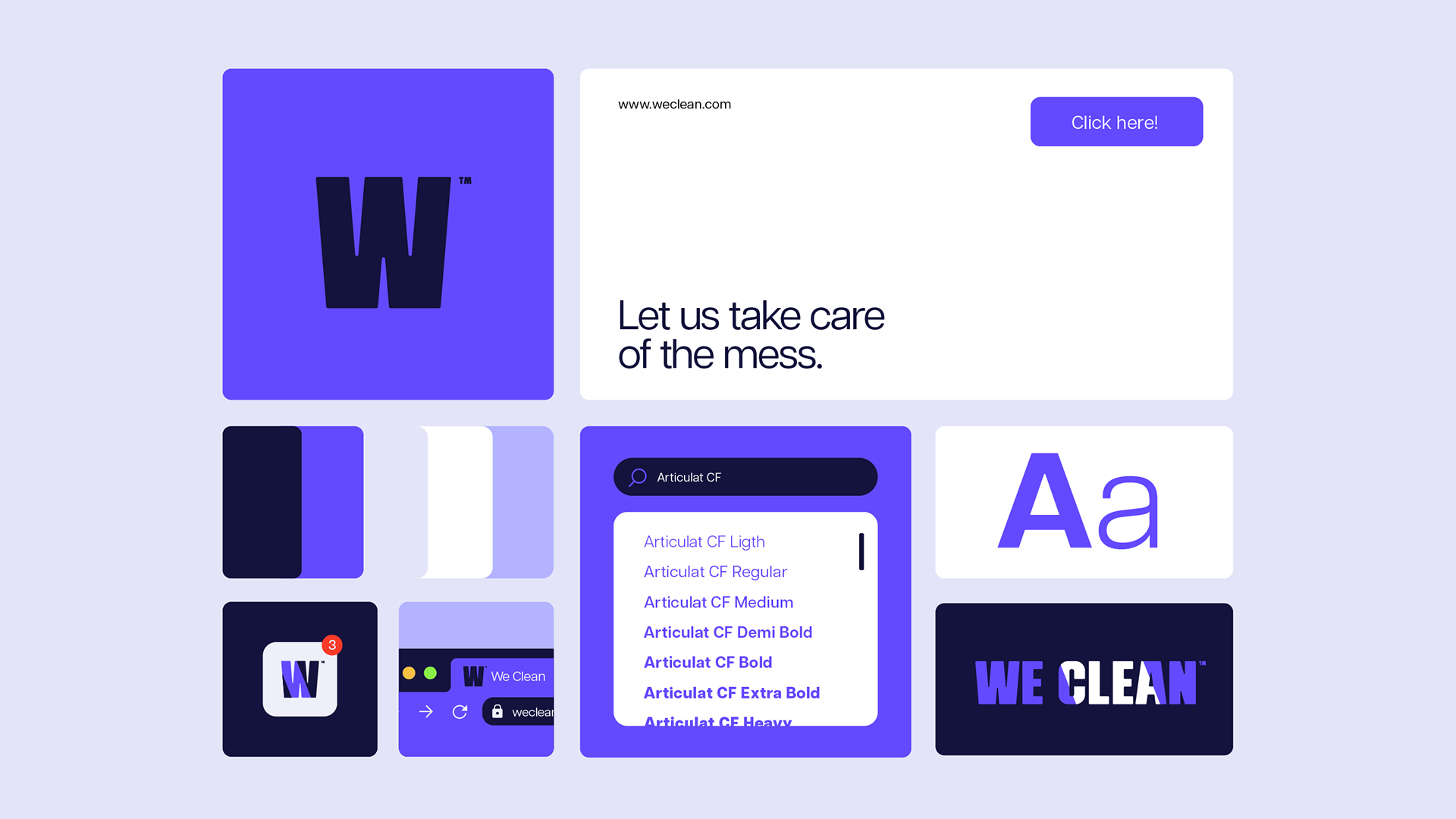 We Clean's main typeface was designed to reflect simplicity, modernity and attention to detail. With straight, simple lines, the typeface conveys a clean, clear appearance, ensuring legibility in all applications. The rounded corners add a soft and welcoming touch, in line with We Clean's friendly and caring approach. This feature also sets the typeface apart, making it unique and easily recognizable.