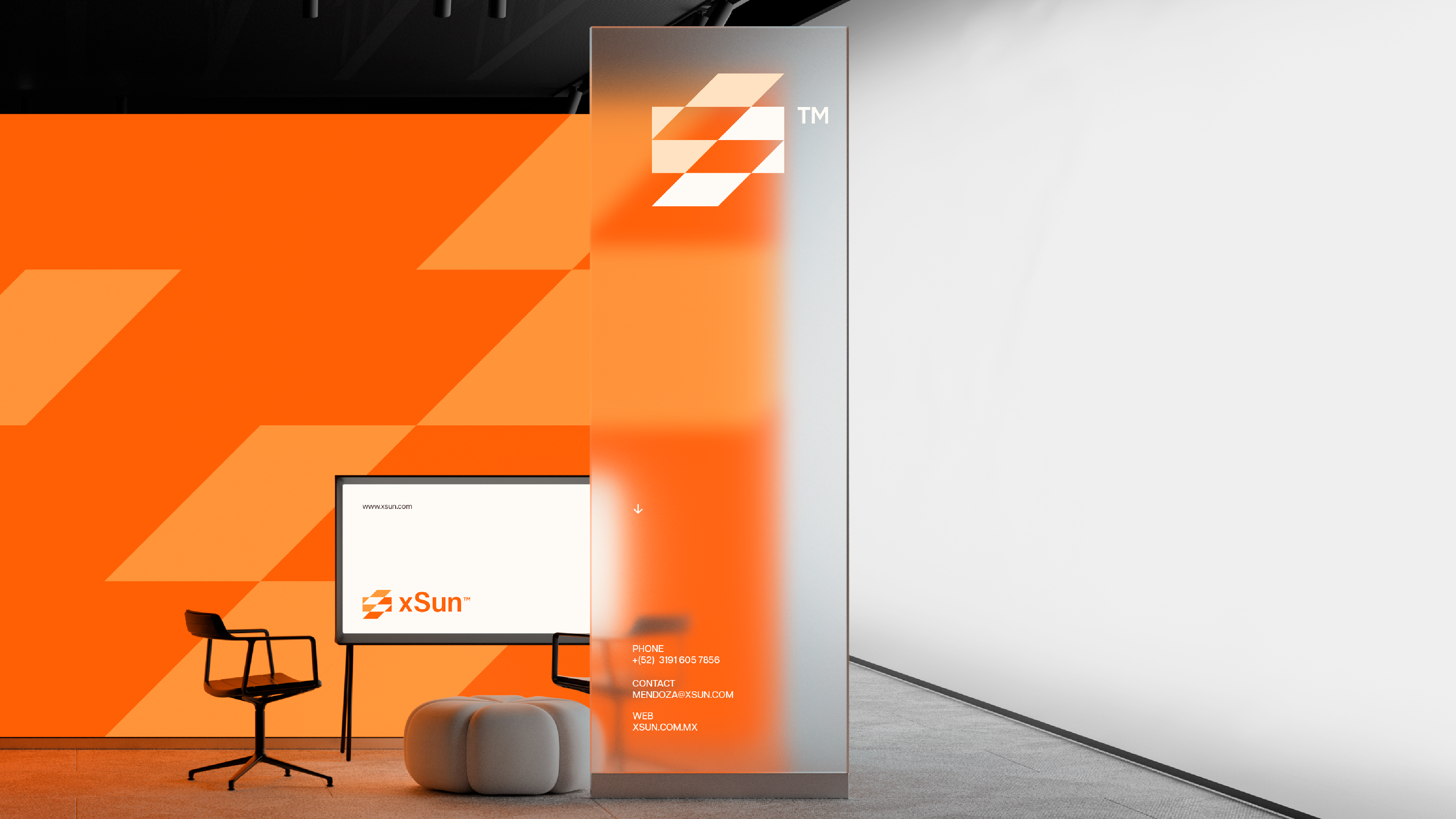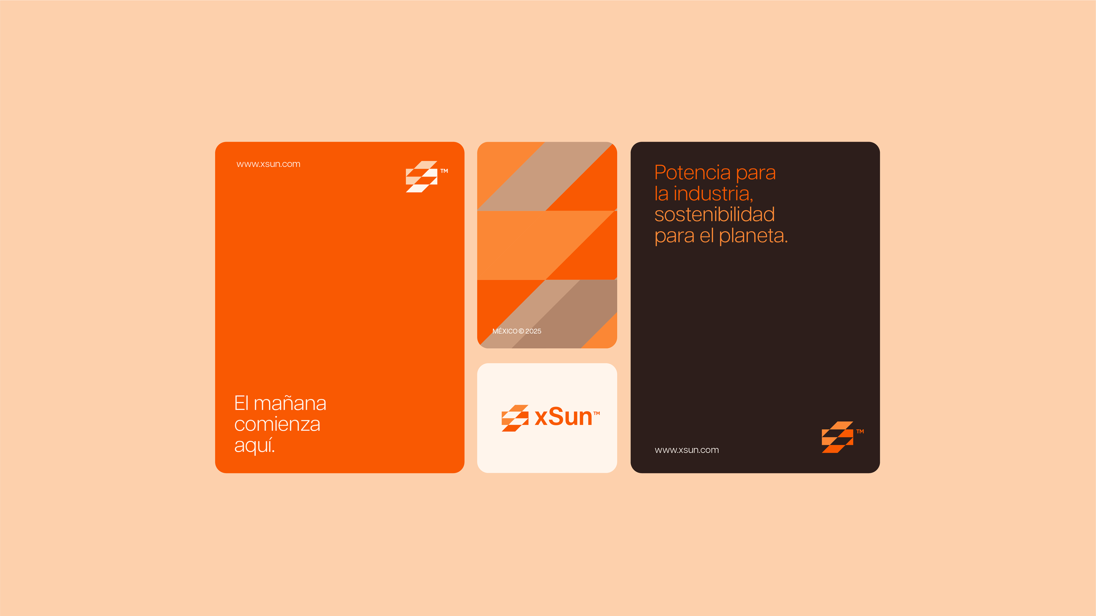 The Trama Solar graphic design stems from the same logic that structures the xSun icon. Formed by lines and blocks inclined at a 45-degree angle, it references the way photovoltaic panels are installed, conveying order, rhythm, and precision.